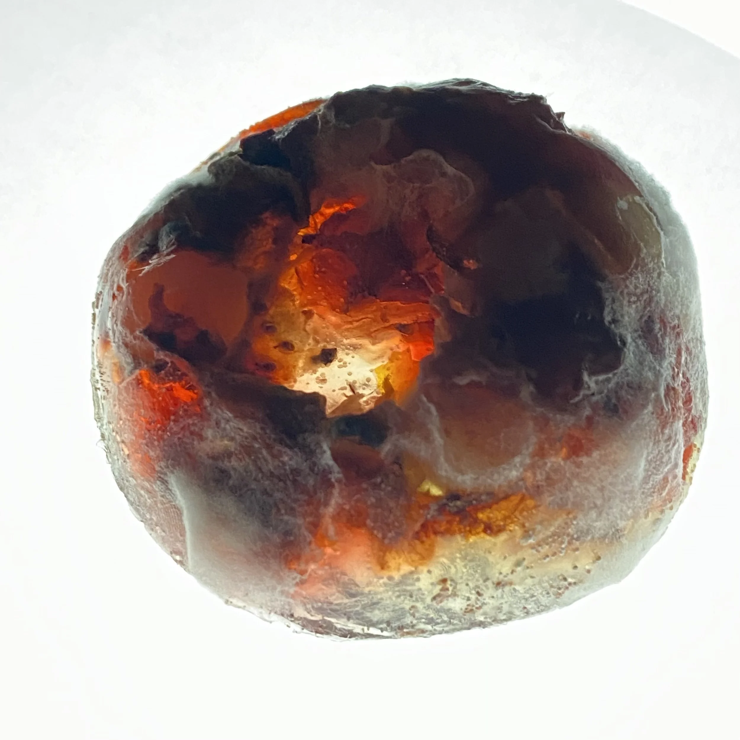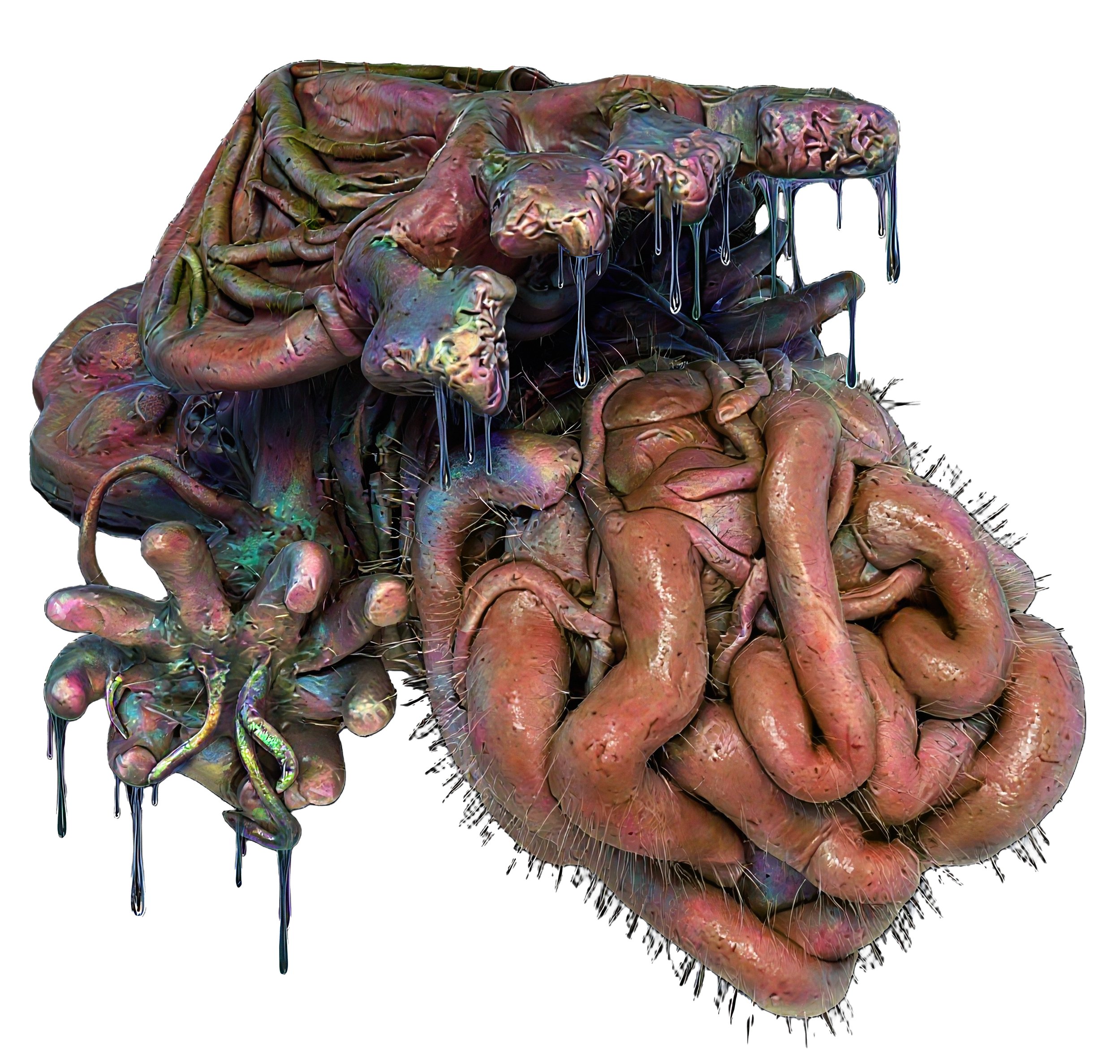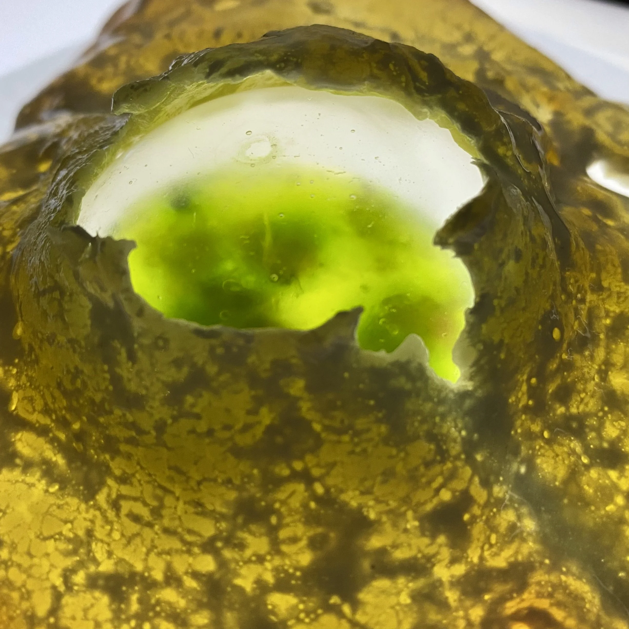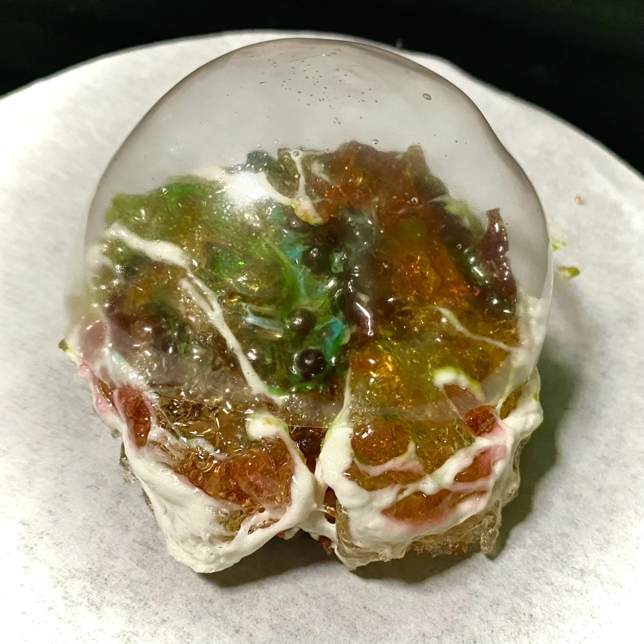 An improvised wet sculpture, composed entirely of edible substances, was created on the surface of a glass plane, filmed from below. A short film (loop) of the 1-hour composition was supplemented by animation of an edible crystalline recreation and a visual effect addendum, and mixed with appropriated experimental music sources. The work is informed by the catabolic process (digestion) which deconstructs and maximizes the benefits of everything we consume, leaving us new opportunities for tomorrow.