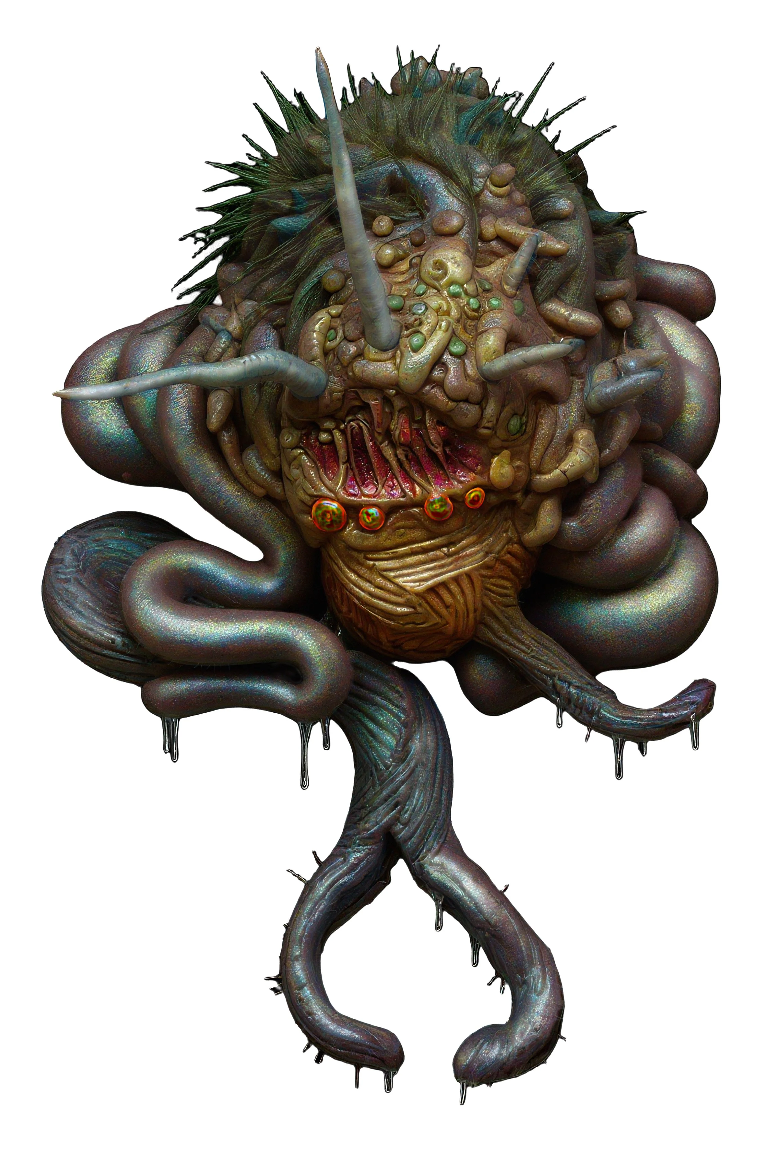 Poster elements: Hand sculpted clay with coloring added by AI.