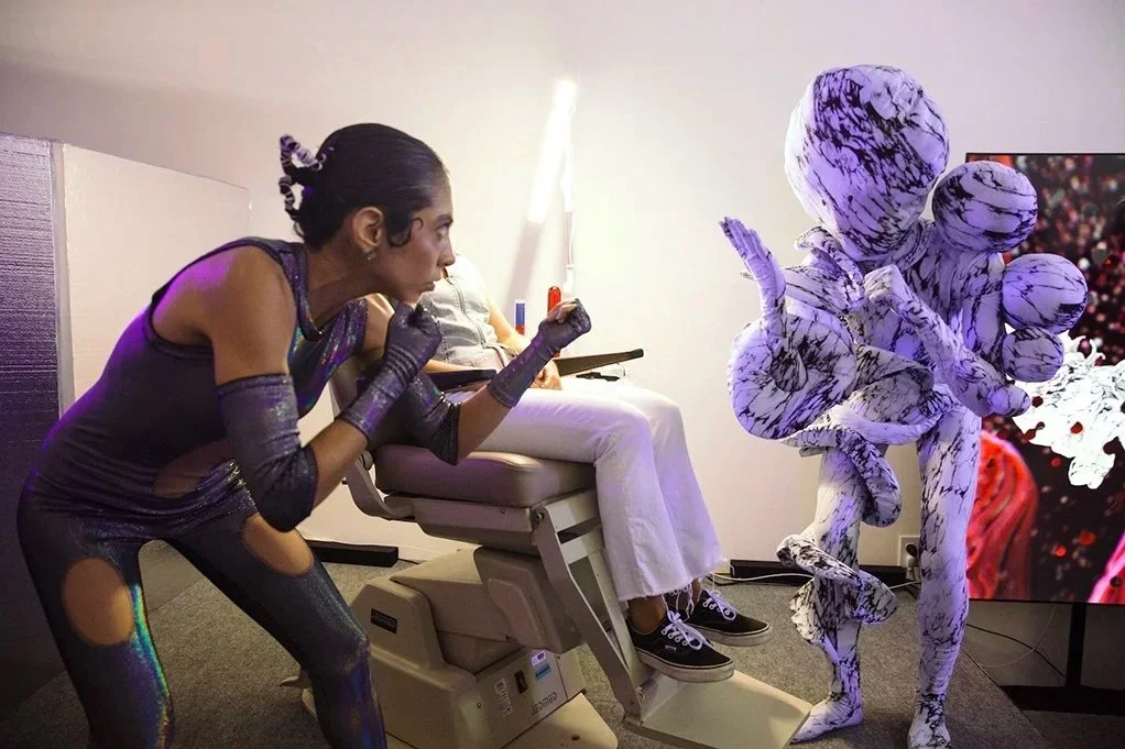 This installation-performance is the first of a series expanding the inside and outside experience of our bodies, from the macro social universe of visual desire and judgement, to the microbiome realities of why our bodies are first and foremost obedient stewards of myriad nanoscale communities.